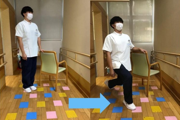 転倒に注意し、椅子や手すりの近くで運動しましょう!