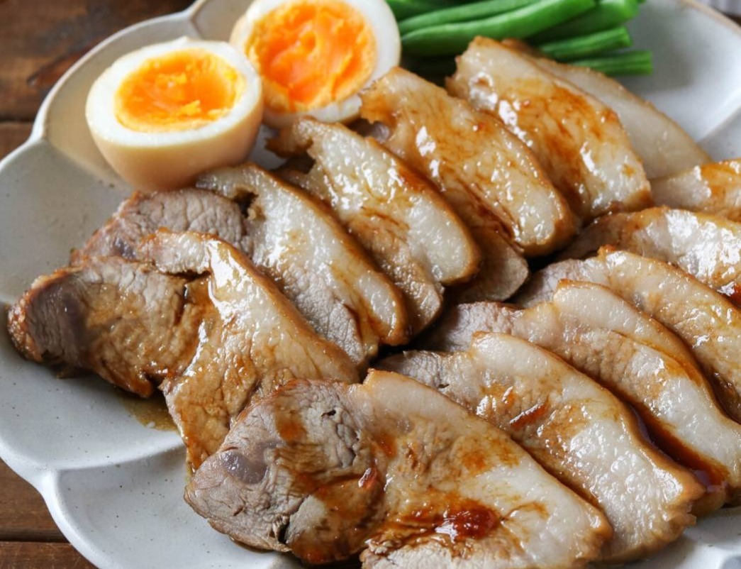 - 豚肉を取り出してゆで卵を入れ、強火で調味料にとろみが付くまで煮詰める。