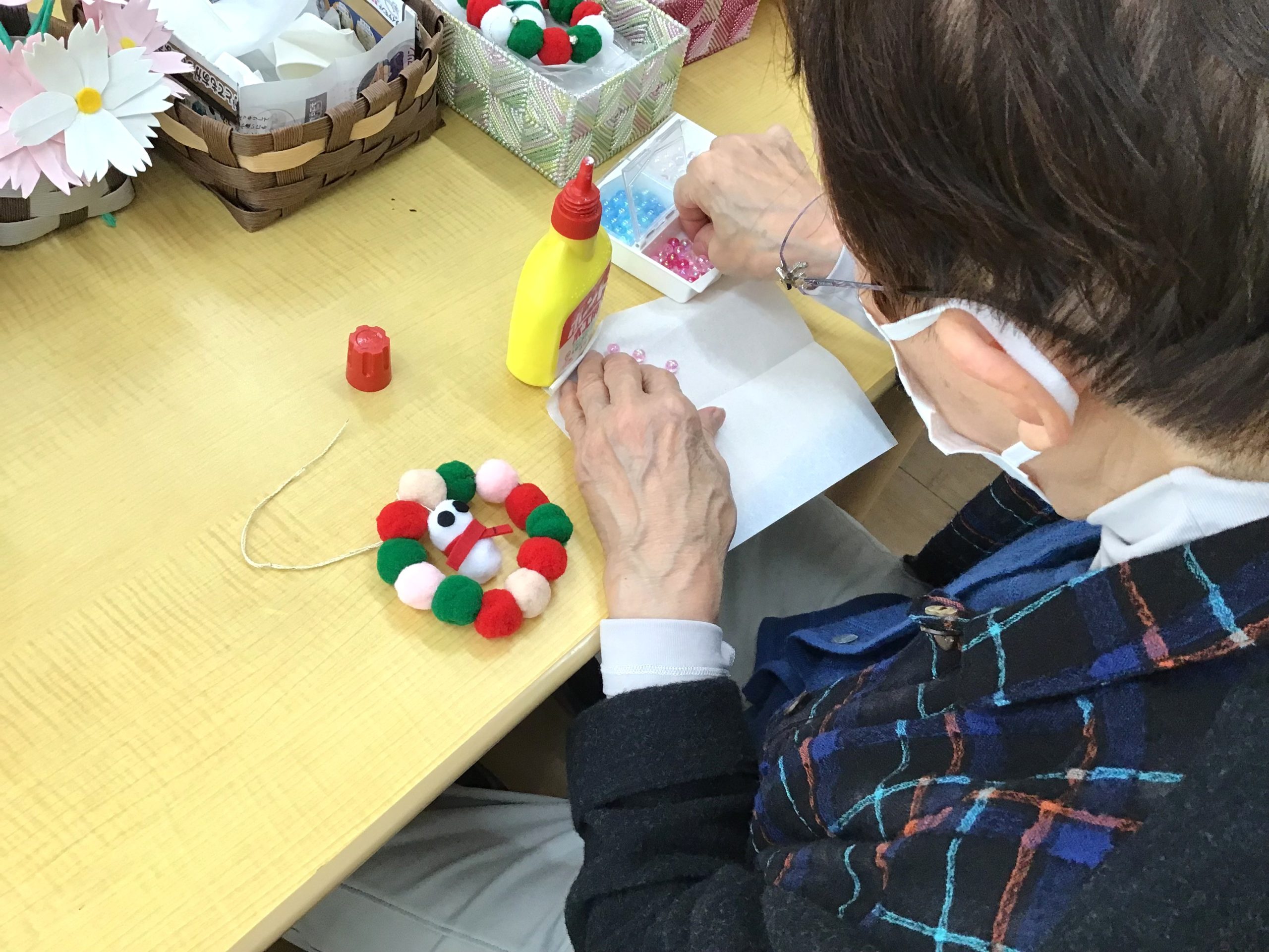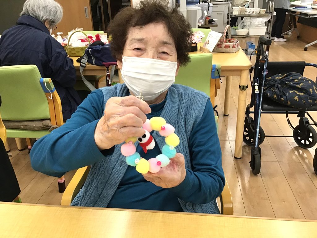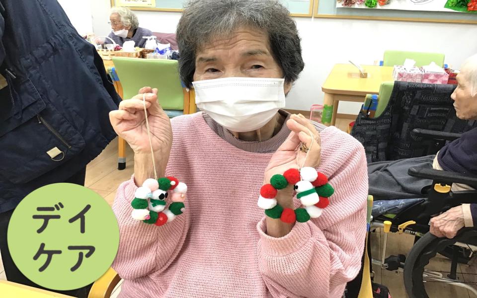 デイケアにて、可愛らしいクリスマスリースを作りました✨