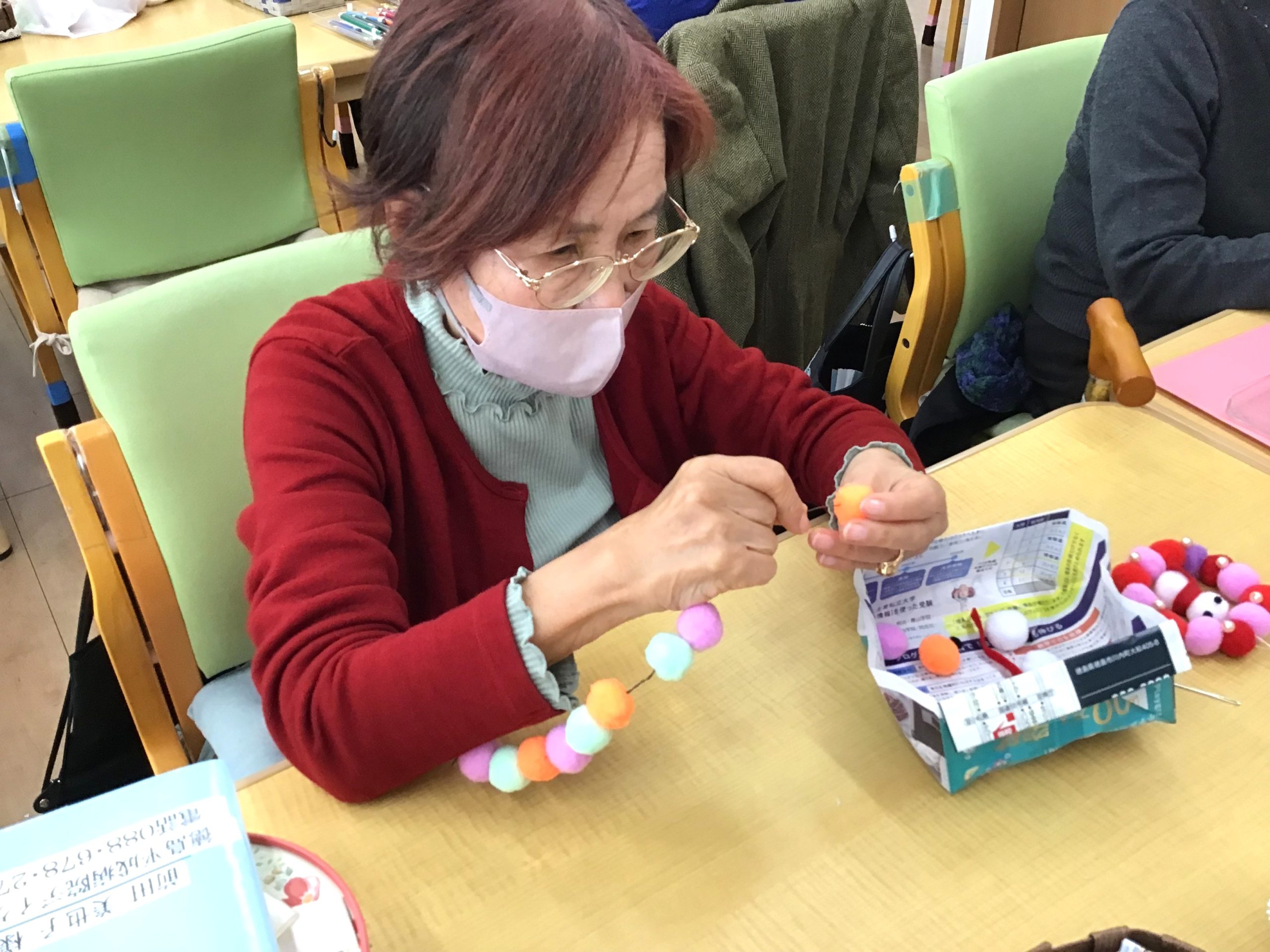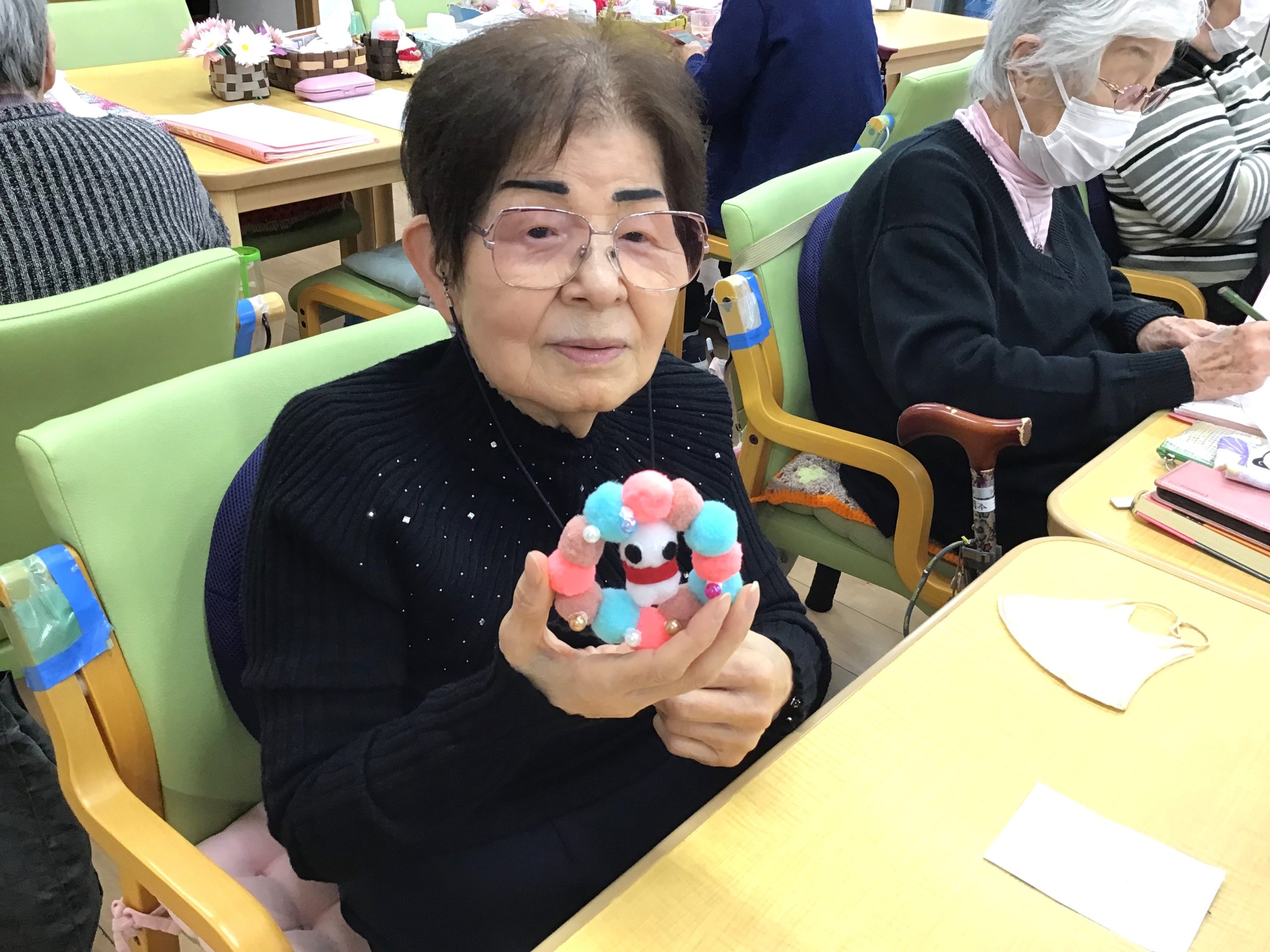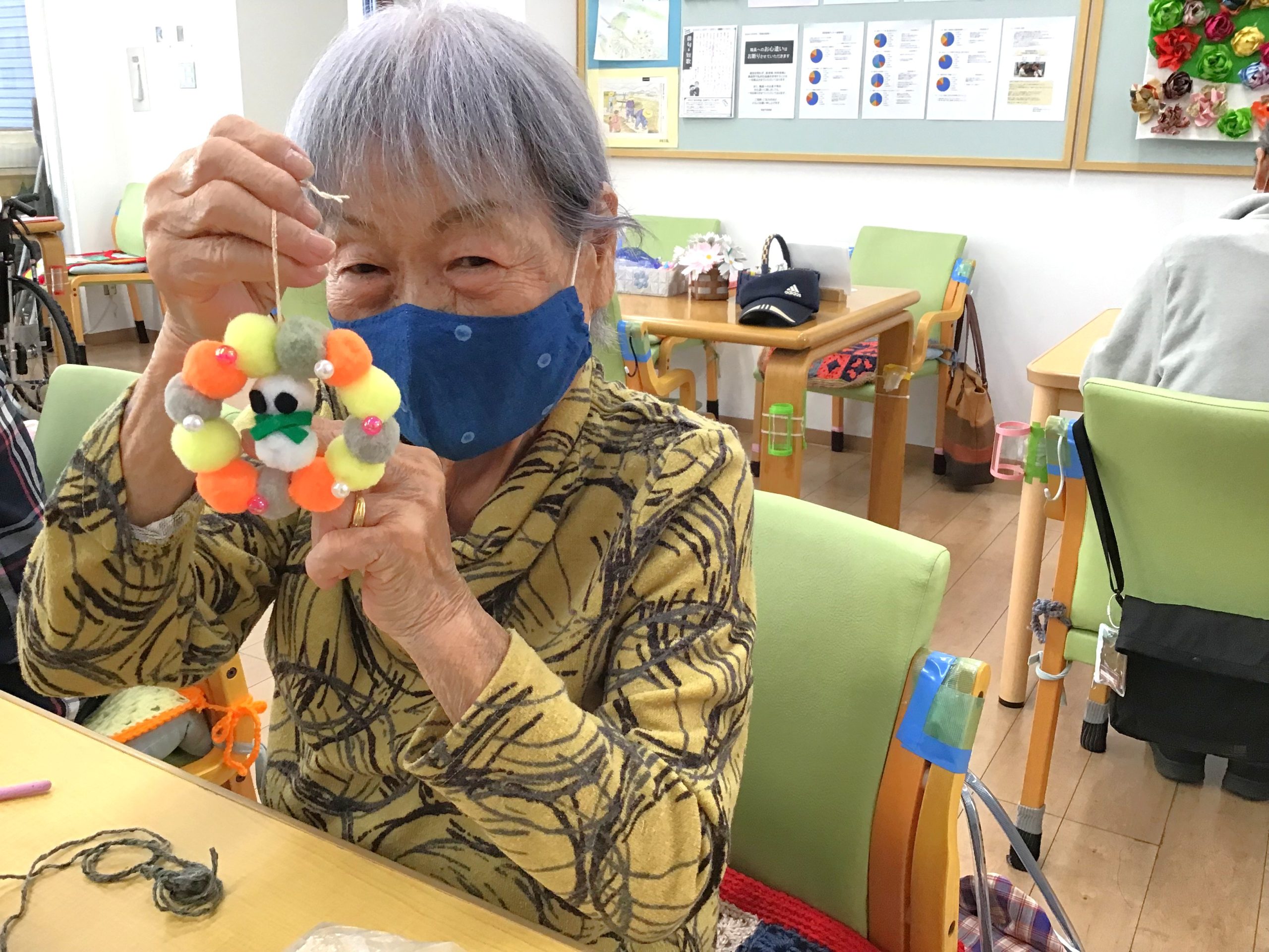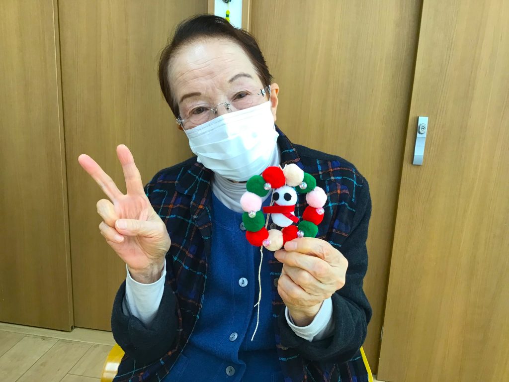 完成した作品を嬉しそうに見せてくれる姿に、私たち職員も思わず笑顔になり、素敵なクリスマスプレゼントをいただいたような気持ちです🎁