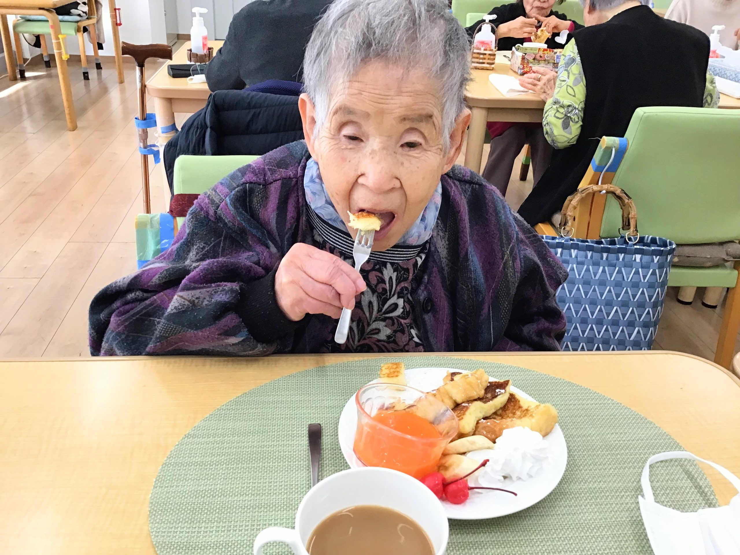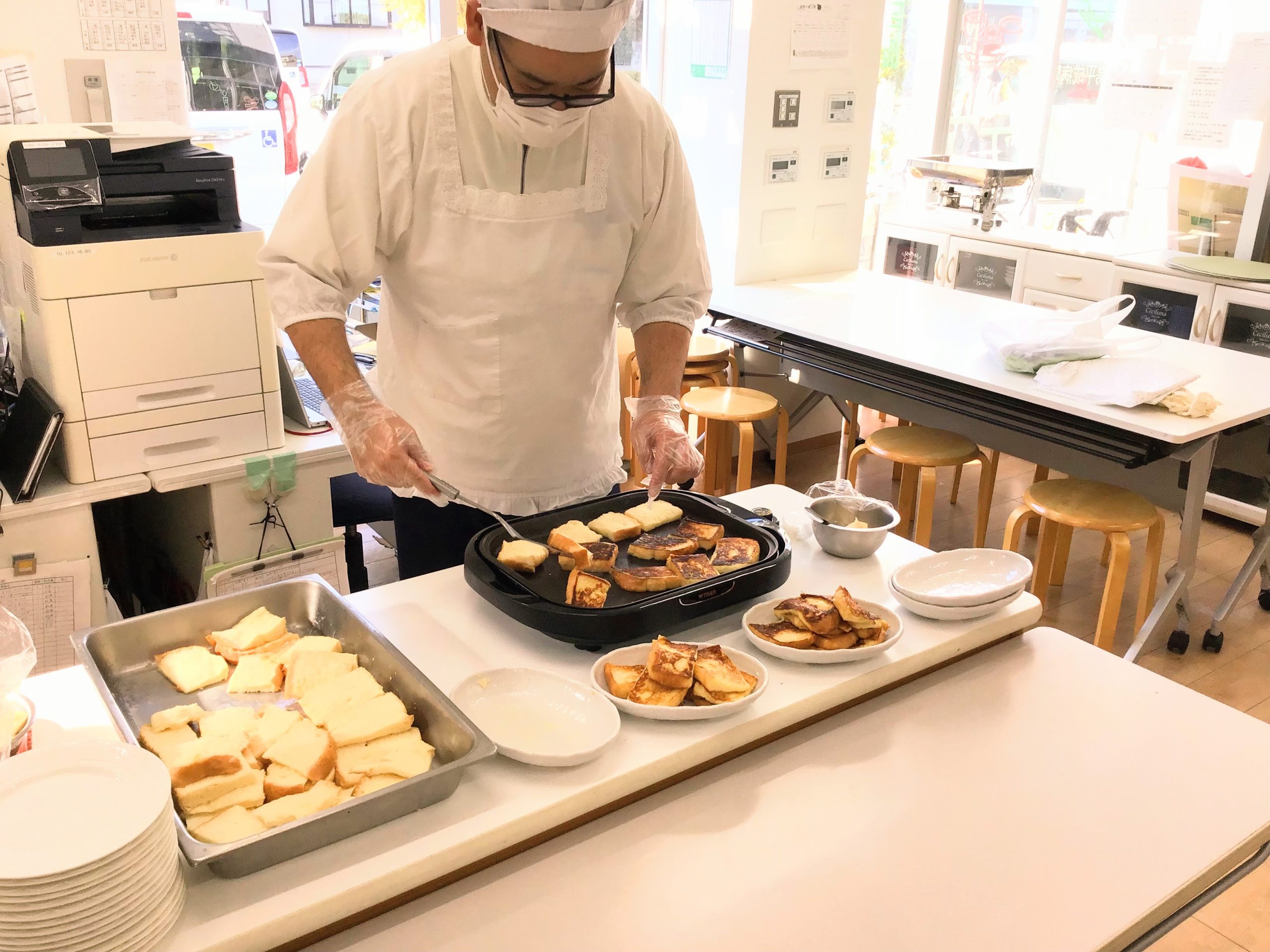 フレンチトーストは職員さんがホットプレートで1枚1枚焼いてくれています🔥