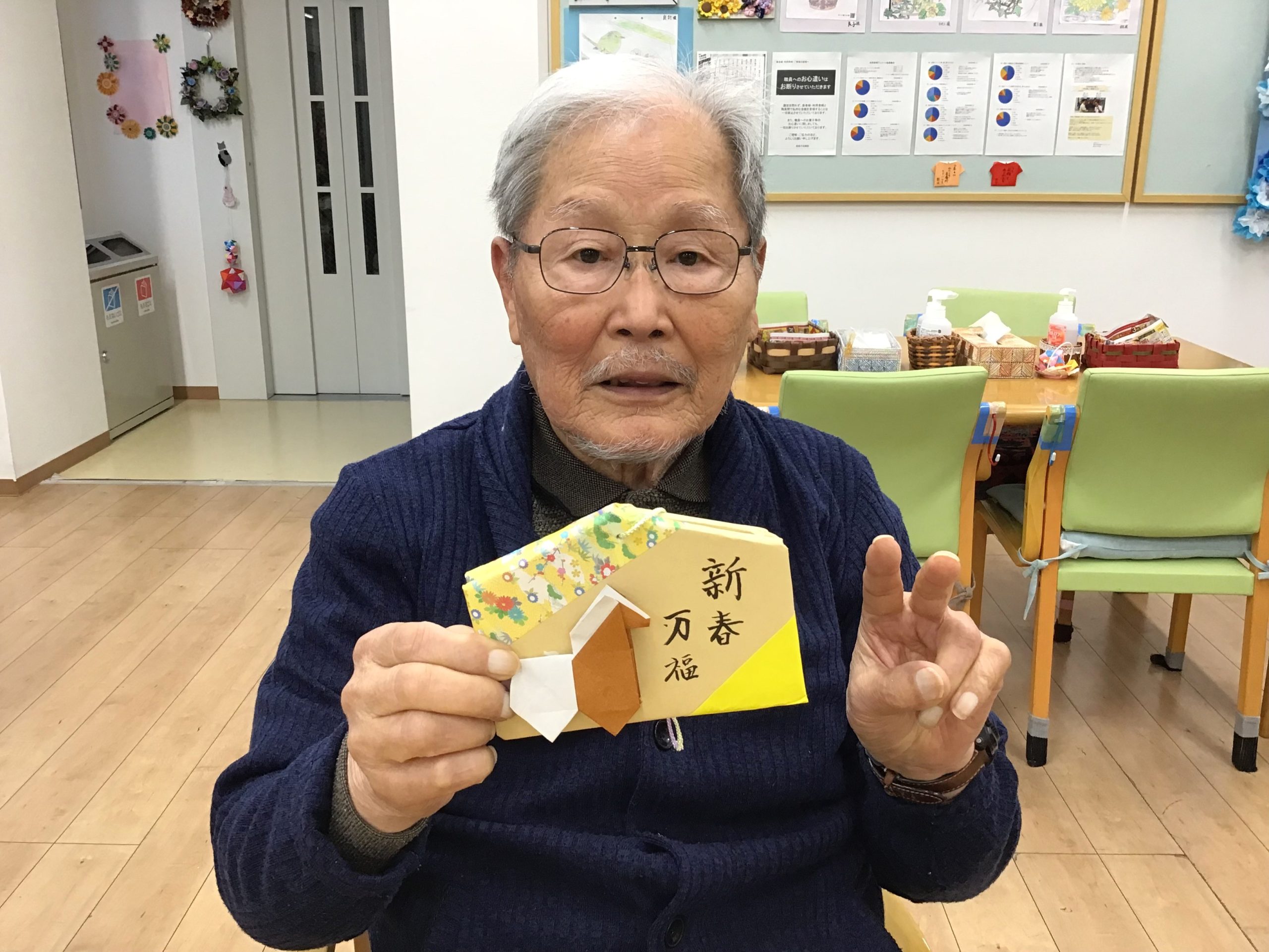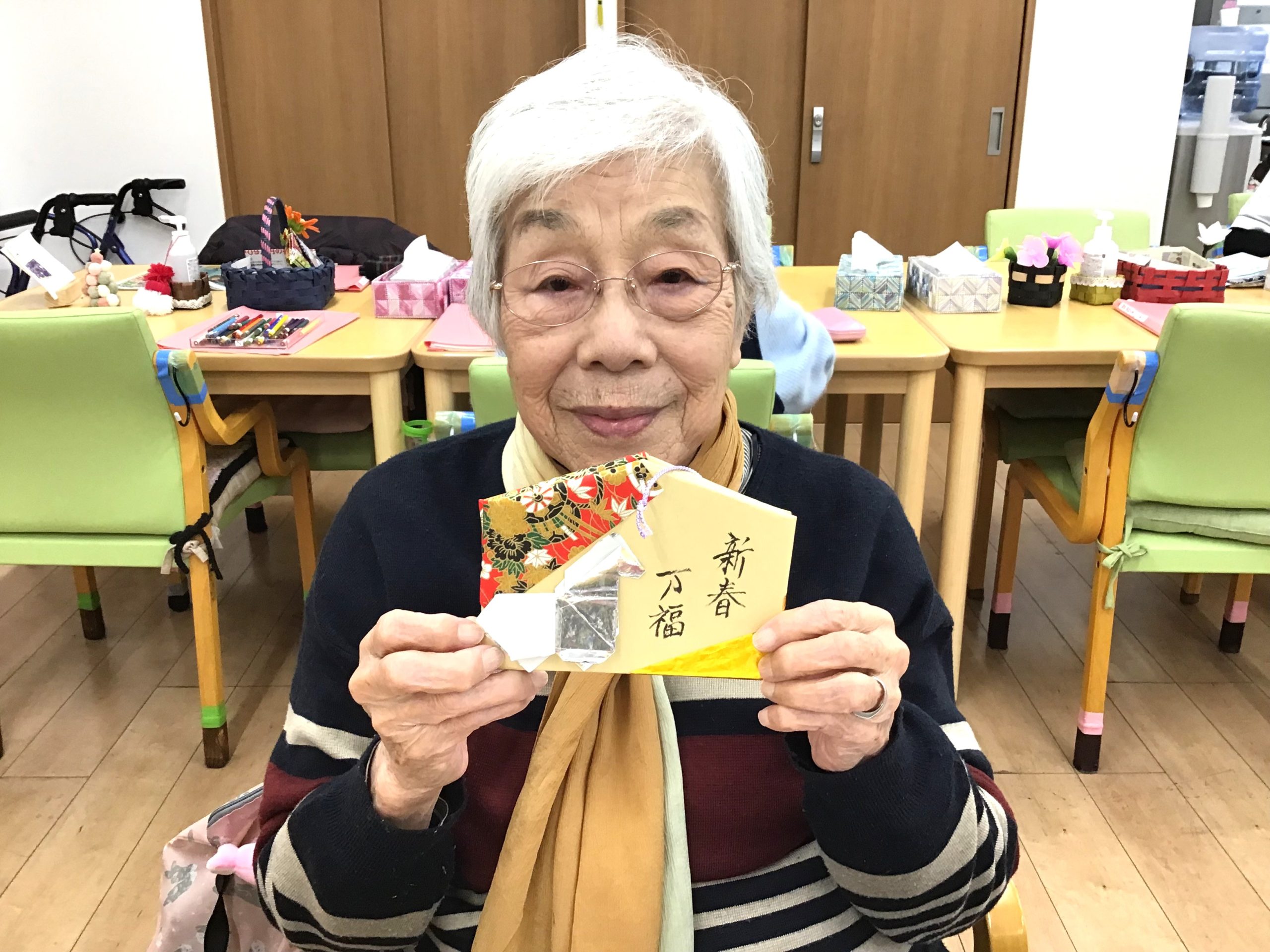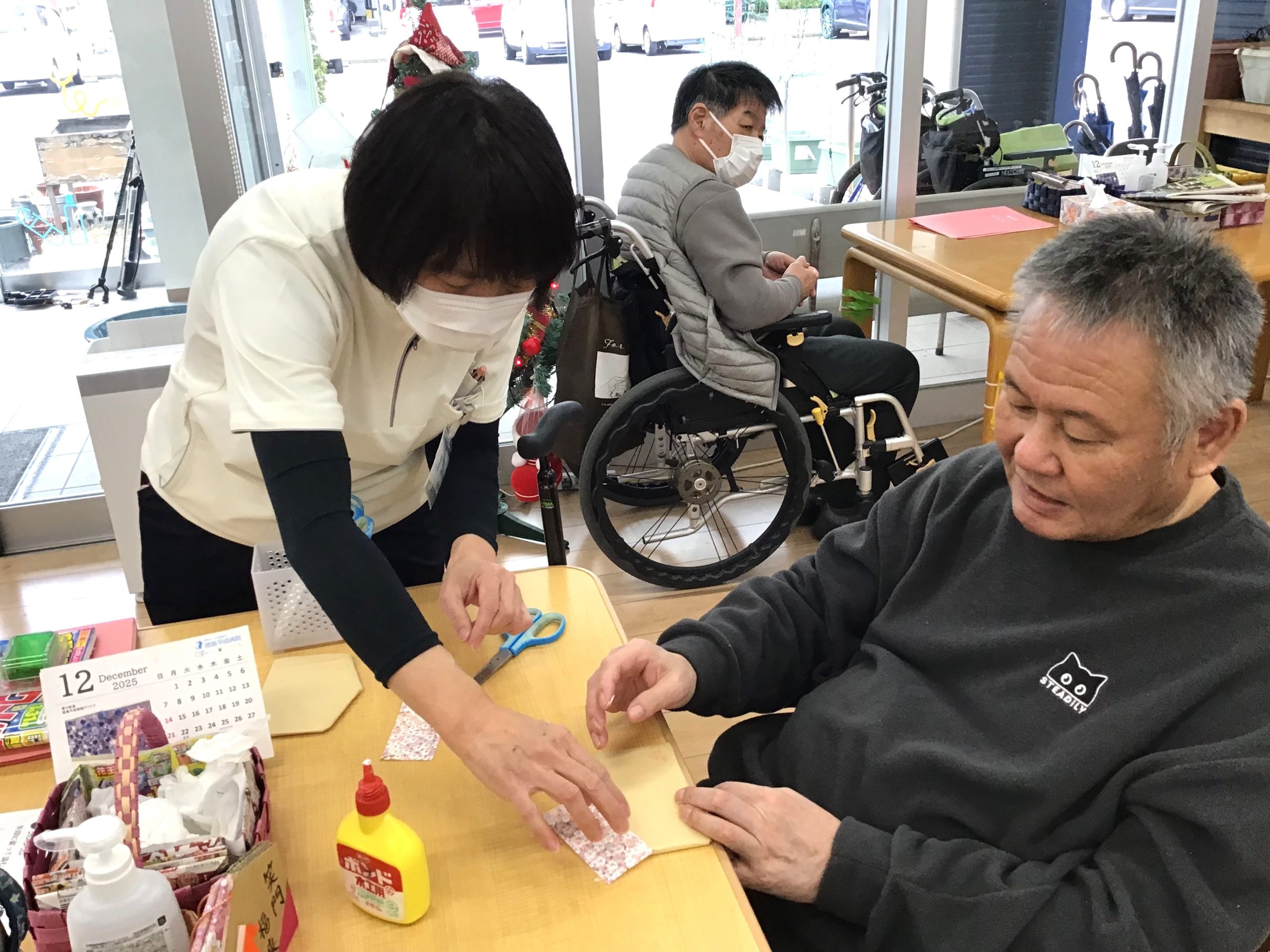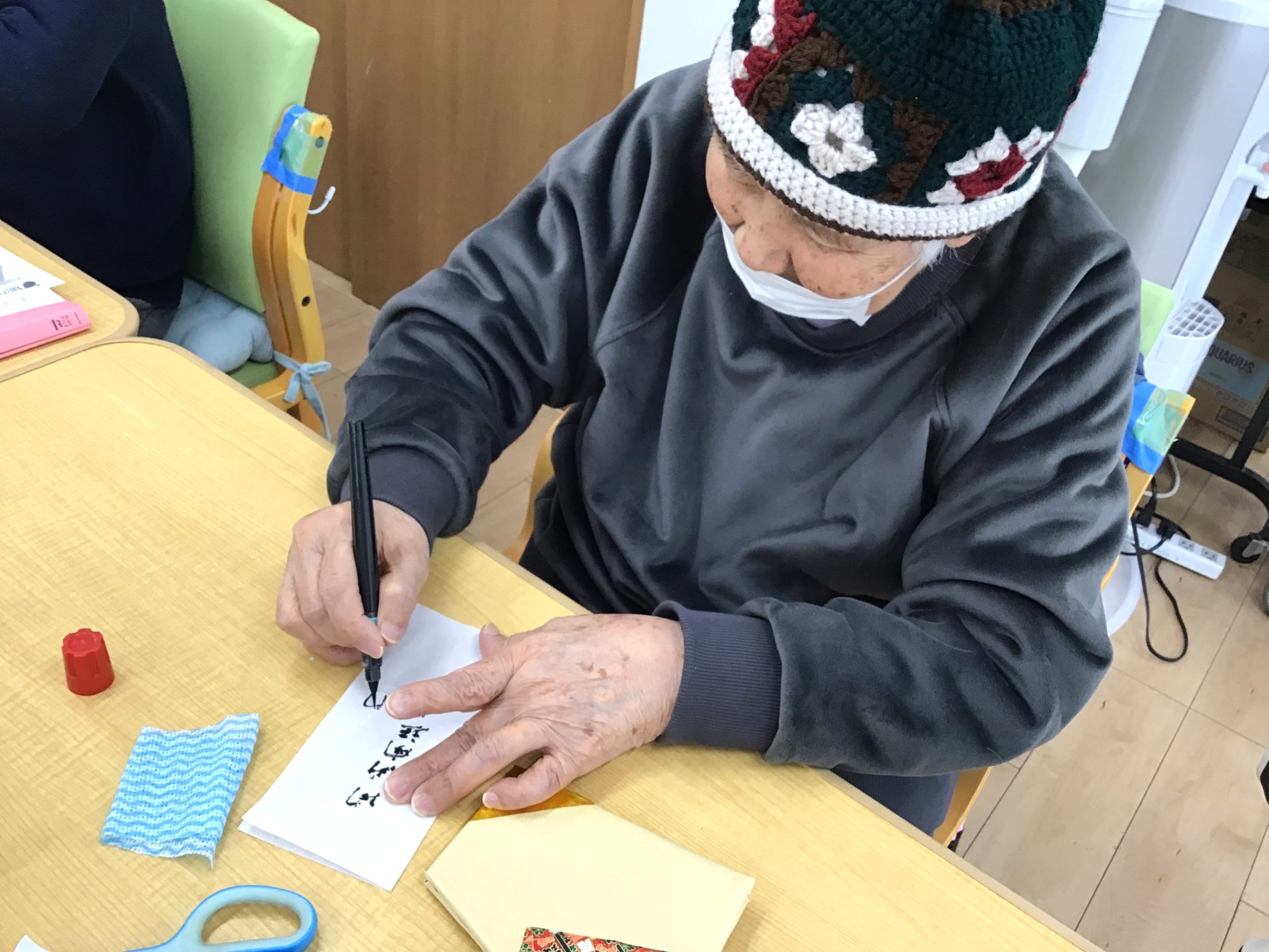 \千代紙の貼り方等、細かなところは職員が隣で一緒にお手伝い♪/