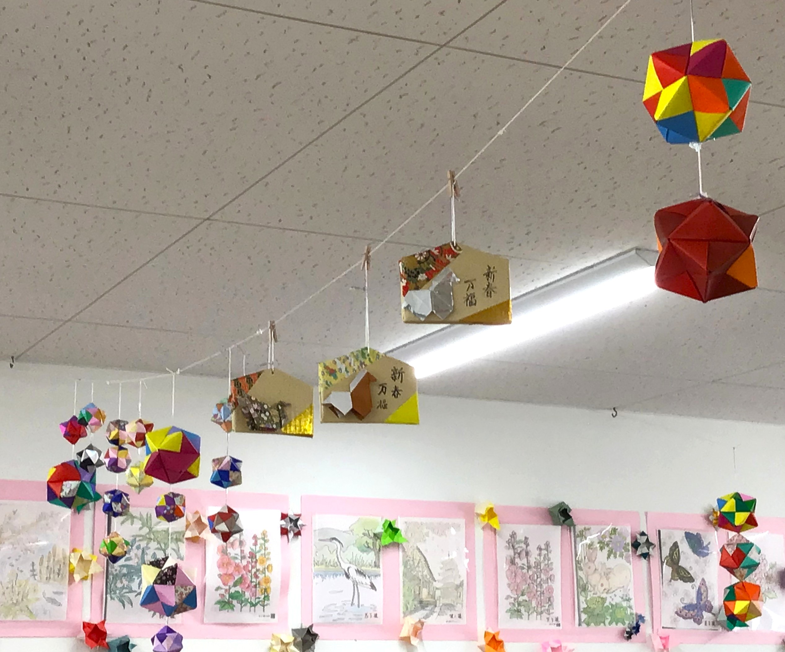 たくさんの縁起の良いモチーフ(くす玉)と絵馬をつるしました✨