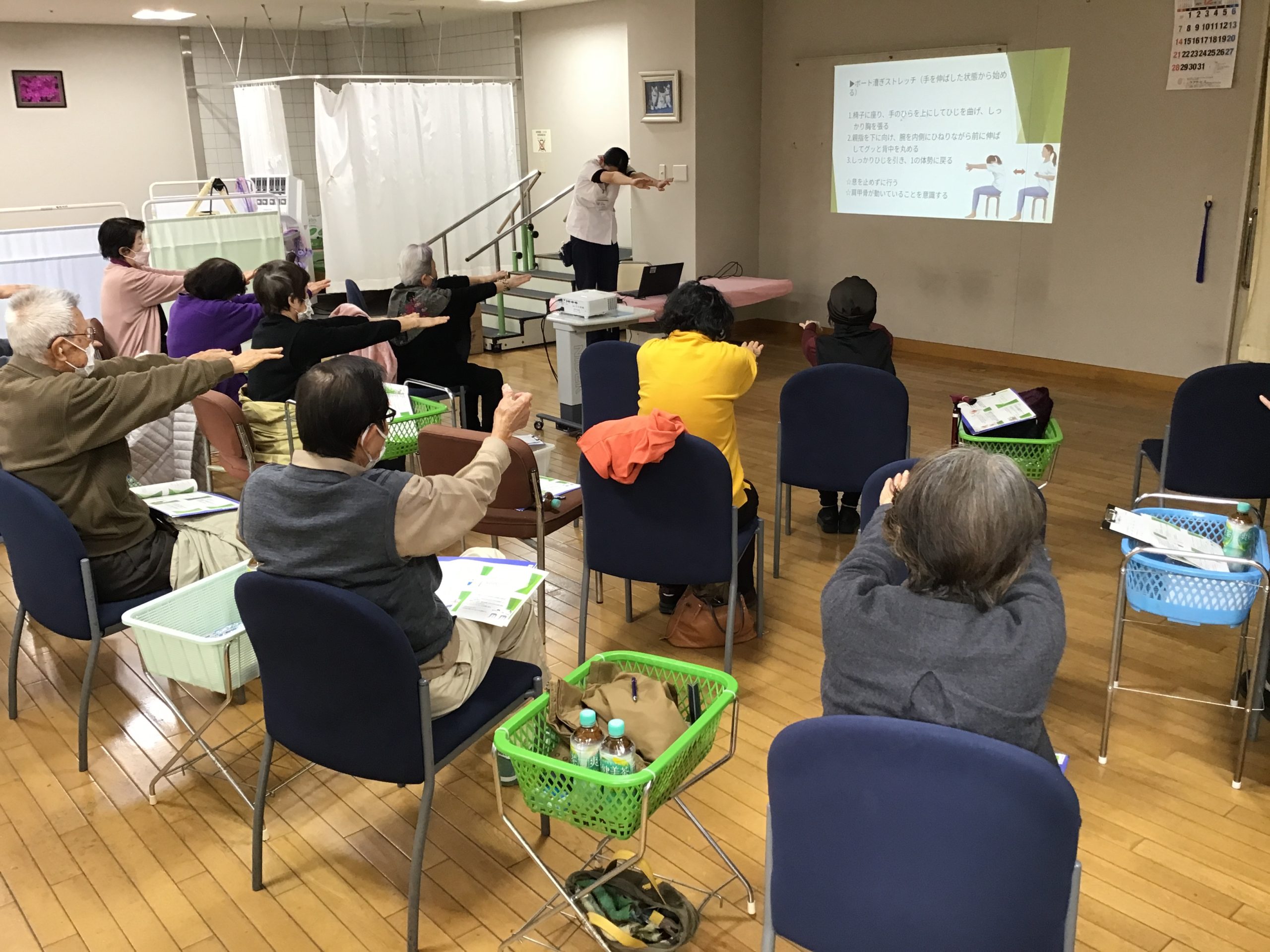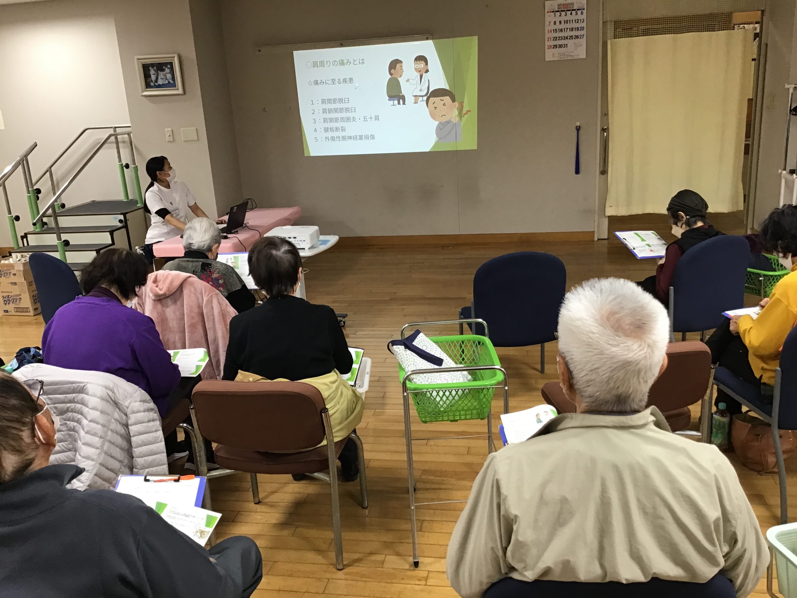 今回は、「肩の悩み・痛みに対する予防と改善」をテーマに、リハビリ職員が講義を行いました。